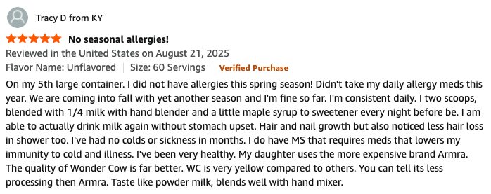 Introducing WonderCow Colostrum Powder — a breakthrough rediscovery of nature’s most powerful “first food,” packed with growth factors, antibodies, and regenerative compounds that help skin repair, gut health thrive, and energy return.